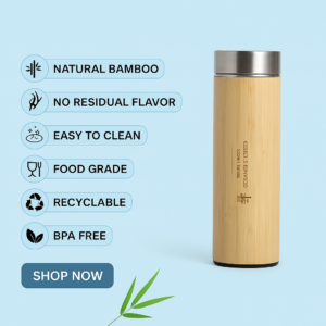 Eco-Friendly Bamboo Water Bottle | Stainless Steel Flask Thermos with Tea Strainer | Double Wall Vacuum Insulated | Hot & Cold | 450ml